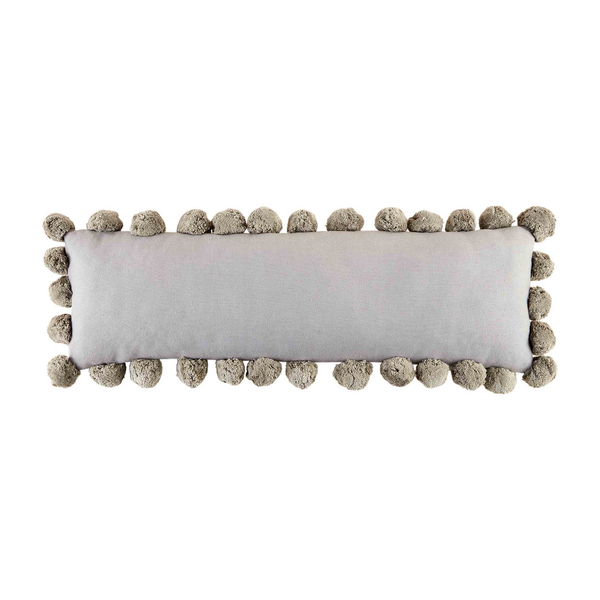 Elevate your home decor with our Gray Long Pom Pom Pillow. This lumbar pillow adds both style and comfort to your space, while the playful pom pom trim adds a touch of whimsy. Perfect for cozying up on the couch or adding a pop of personality to your bed.