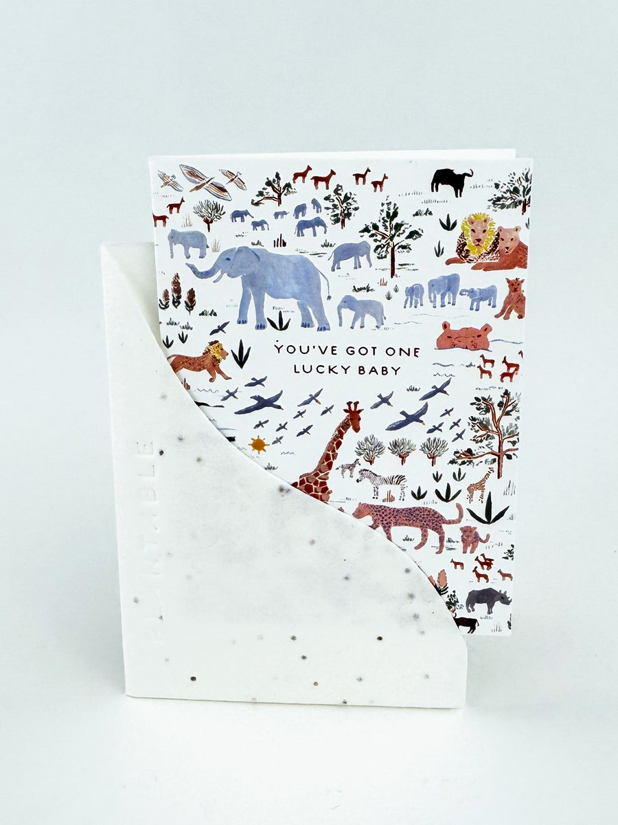 A charming way to welcome a little one into the world. This petite card pairs a sweet message with sustainable beauty—featuring a plantable wildflower seed envelope that blooms just like new beginnings.