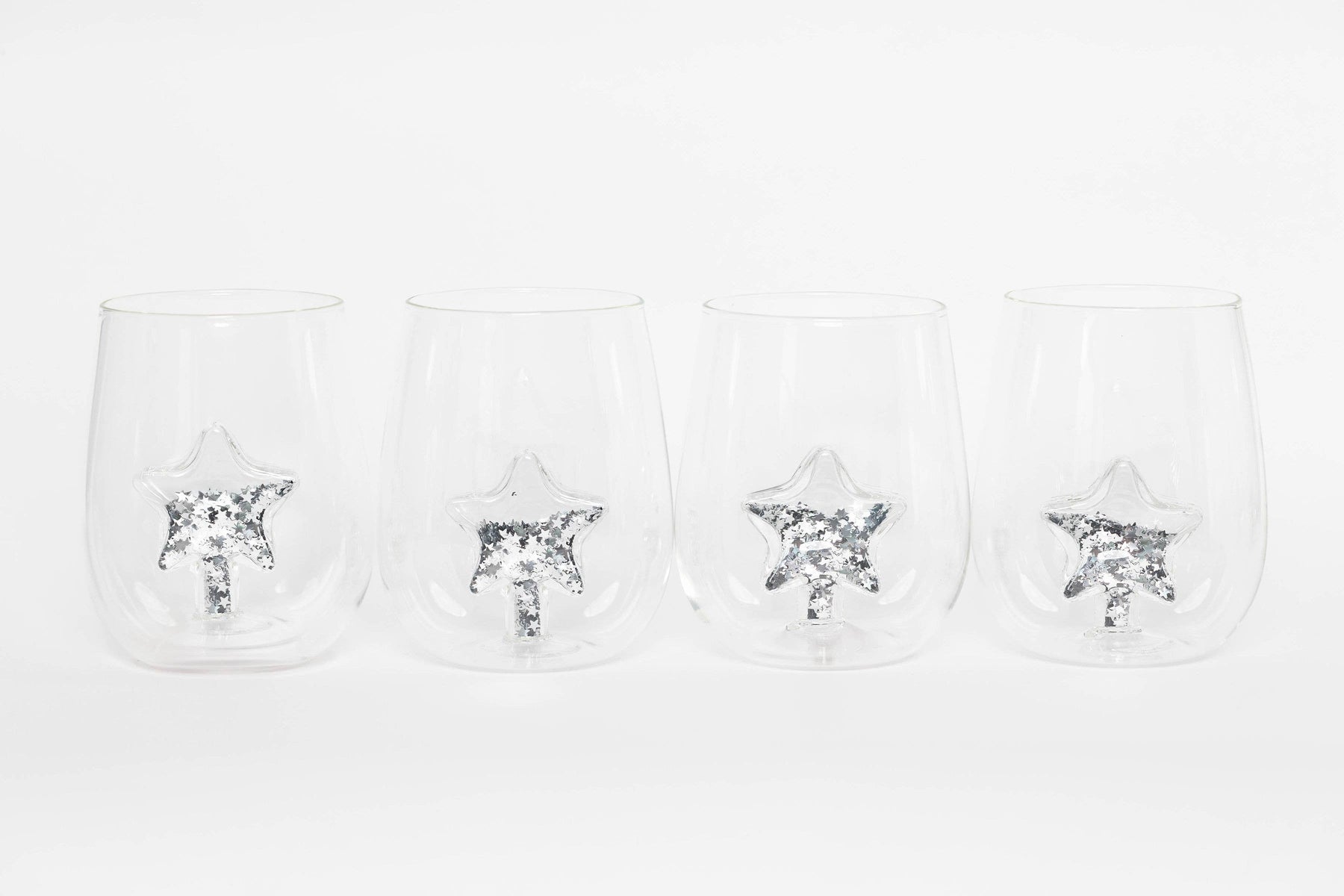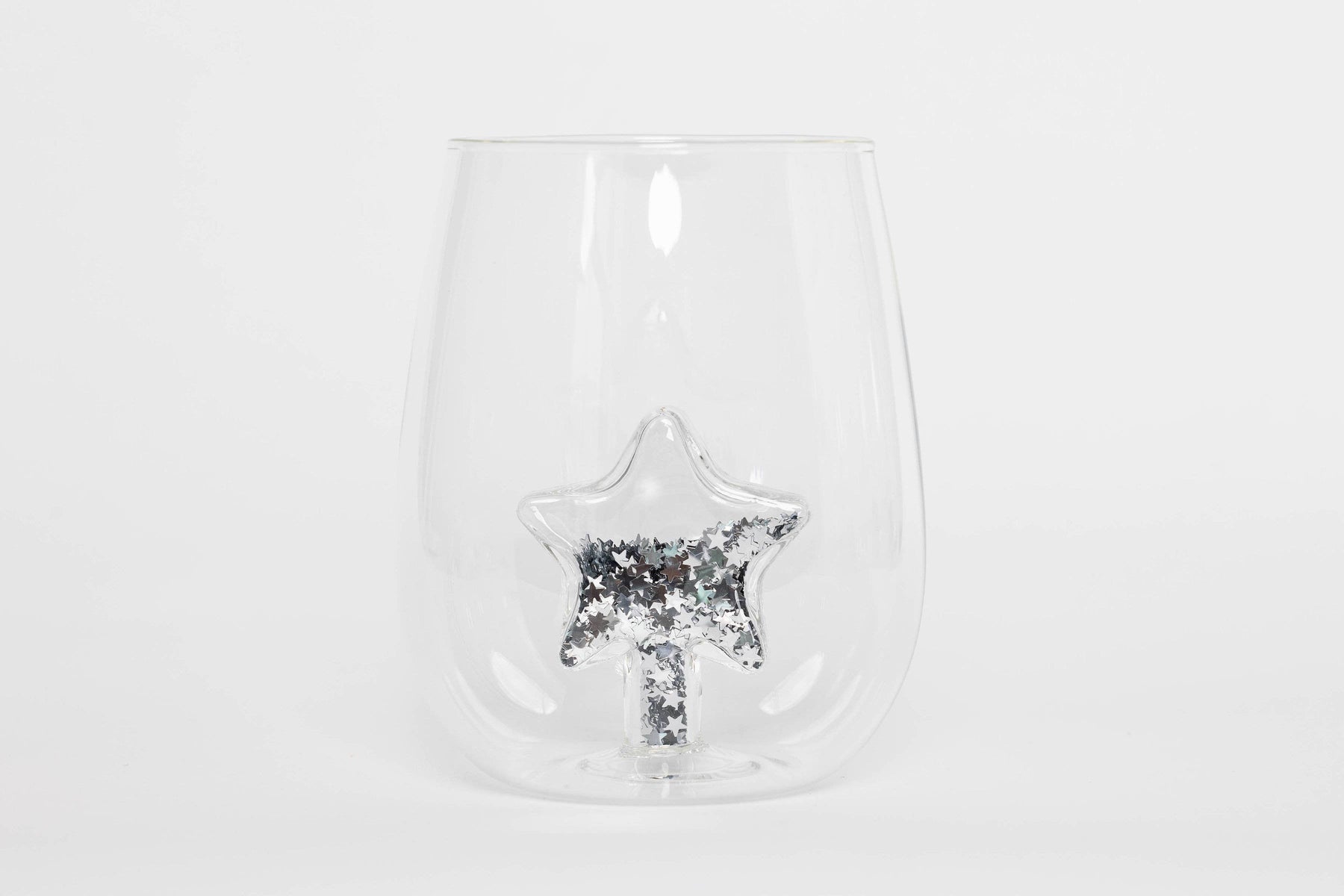 Celebrate the season with sparkle! The Glitter Star Stemless Wine Glasses are the perfect blend of festive charm and elegant design. Each borosilicate glass features a hollow star icon at the center, filled with shimmering silver glitter that catches the light with every sip. Designed as keepsakes, not just drinkware, these glasses are ideal for holiday gatherings, thoughtful gifts, or adding a magical touch to your winter decor. Wrapped in tradition, made for memory-makingâthis is Christmas.
