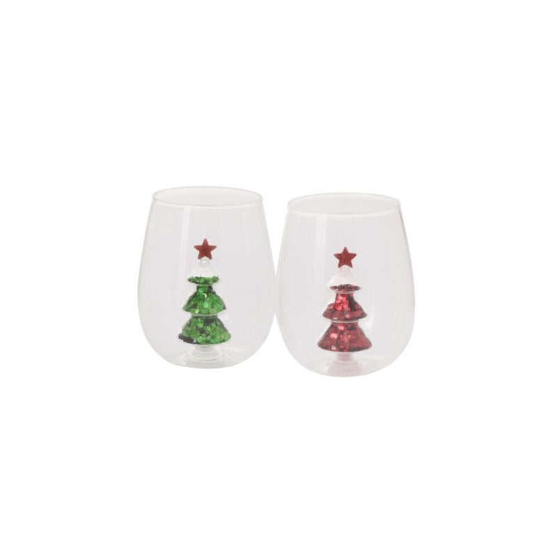 Cue the confetti with a celebratory drink in the Glitter Tree Drinkware Collection, delightfully festive stemless glasses complete with a star topped, and glitter filled tree inside. These clear borosilicate glasses have a rounded base and are perfect for sipping mulled wine or sparkling beverages.