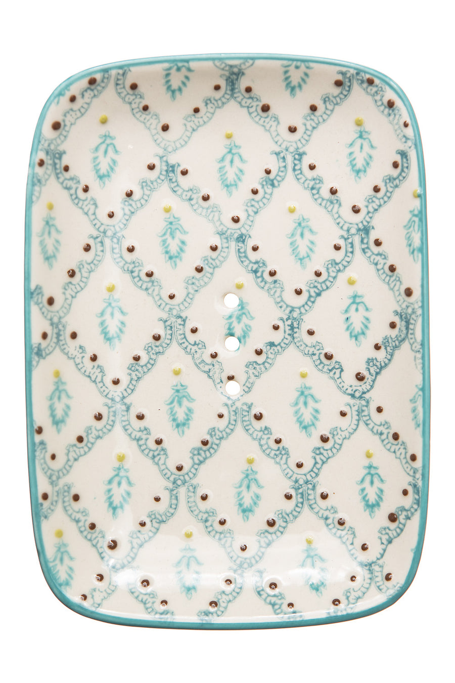 This stoneware soap dish combines practical use with charming design. Featuring a unique, hand-applied retro print, it adds a distinctive touch to your bathroom decor. Each piece is one of a kind, ensuring your soap dish stands out while keeping your soap dry and accessible.