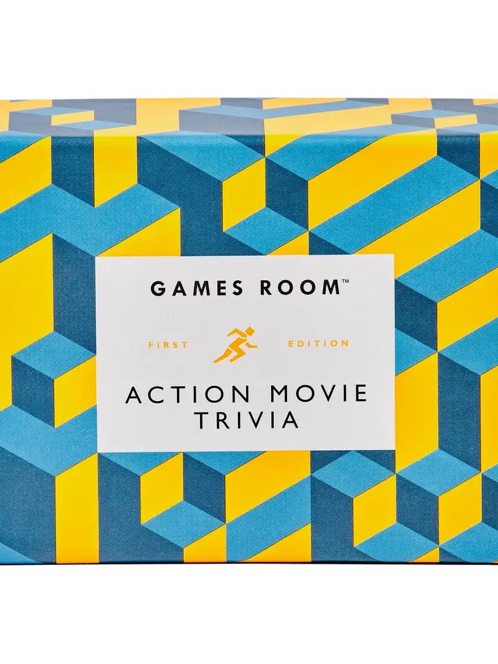 Strap yourself in for heart thumping high octane action movie trivia with this Games Room Action Movie Trivia! Who will be the resourceful hero and who'll be the superfluous henchman? Test your knowledge on action films from Die Hard to Taken and see who is the ultimate action film fanatic! Packaged in a geometric print box, the set contains 140 question cards and instructions.