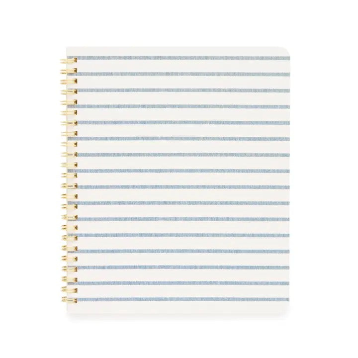 Our Blue Breton Notebook in white is spiral bound with blue Breton stripes. 50 lined pages.