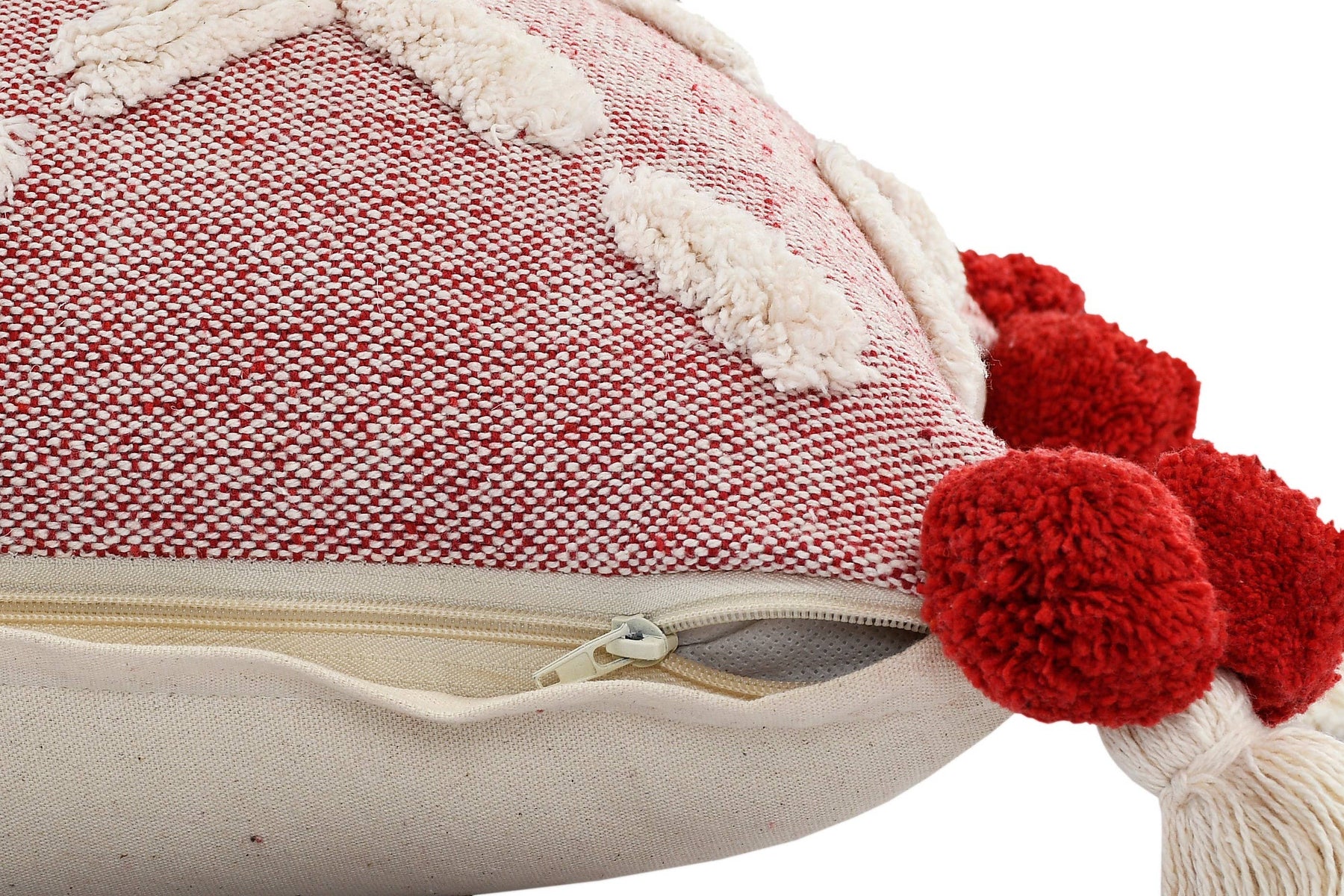 Add a playful pop of color to any room with this vibrant red pom-pom pillow. The generous 20" x 20" size makes it perfect for layering on sofas, beds, or accent chairs, while the textured pom-pom detailing brings dimension and visual interest to your décor. Soft and inviting, it's an easy way to refresh your space with personality and warmth. A versatile piece that works beautifully in modern, eclectic, or traditional interiors.