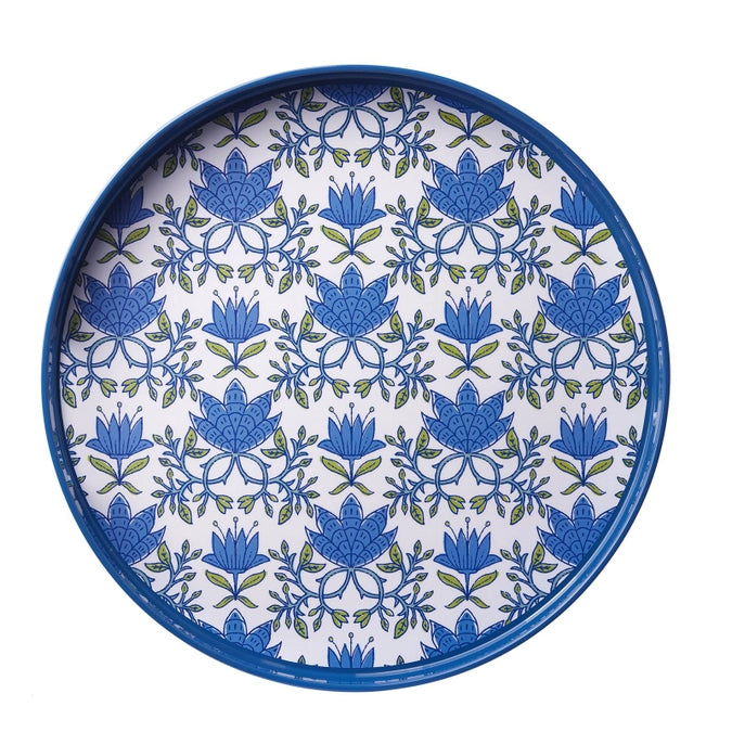 Bring cheerful functionality to your home with the Tilly 15" Round Tray. This beautifully designed serving piece offers the perfect surface for drinks and snacks, whether you're enjoying a quiet evening alone or hosting friends. Its versatile size and stylish blue pattern make it both a practical addition to your home and a thoughtful gift that recipients will treasure. Join our many returning customers who collect these trays to refresh their spaces season after season.