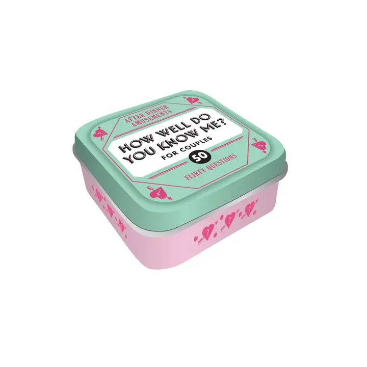 Test which partner knows the other best with this romantic addition to our After Dinner Amusements series! Pull one of these 50 flirty question cards to see if your special someone has been paying attention and relive romantic memories together.